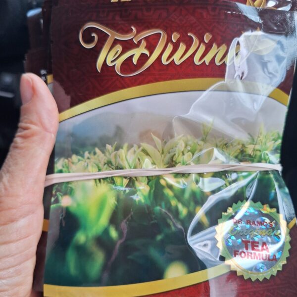 TeDivina ha sido formulado para ayudar de forma natural a limpiar y desintoxicar tu cuerpo y tu mente, creando la base para tu propia Vida Divina. TeDivina es una mezcla de 12 hierbas y contiene hojas de caqui, hojas de malva sagrada, marisma, cardo bendito, papaya, mirra, manzanilla, arándano rojo, chaga siberiano, ganoderma lucidum, fibra soluble y jengibre.