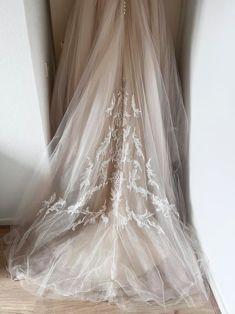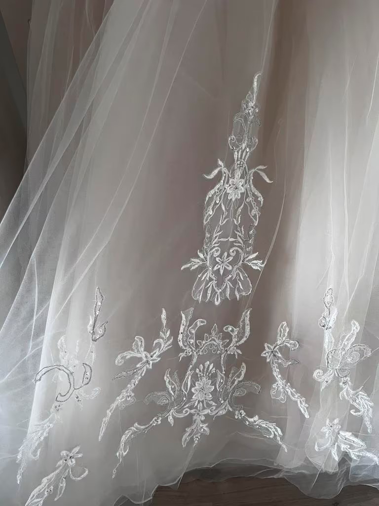 ¿Estás buscando el vestido perfecto para tu gran día? Este romántico y elegante vestido de novia de Madeline Gardner New York es un auténtico vestido de ensueño. El vestido solo se ha usado una vez y está en excelentes condiciones.